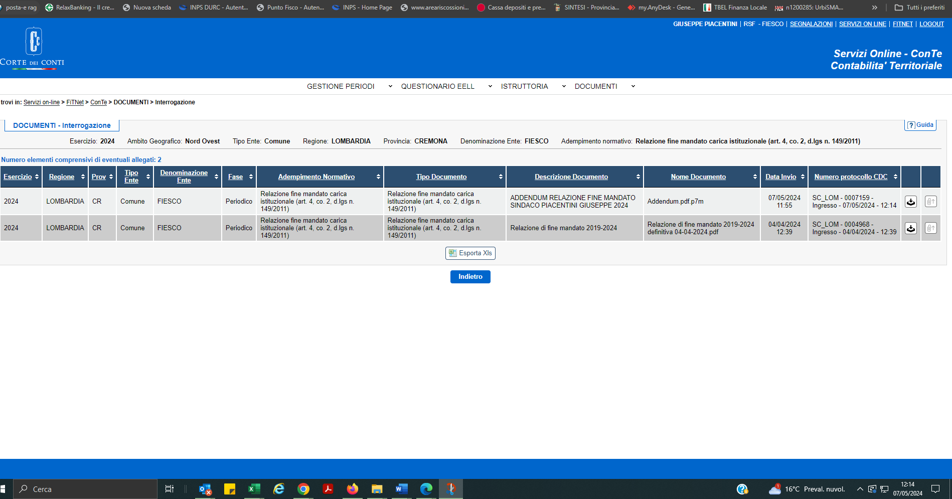 Alleghiamo la relazione di fine mandato anni 2019-2024.